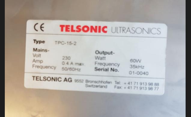 Description: TELSONIC Ultrasonics Power Cleaning. Type TPC-15-2