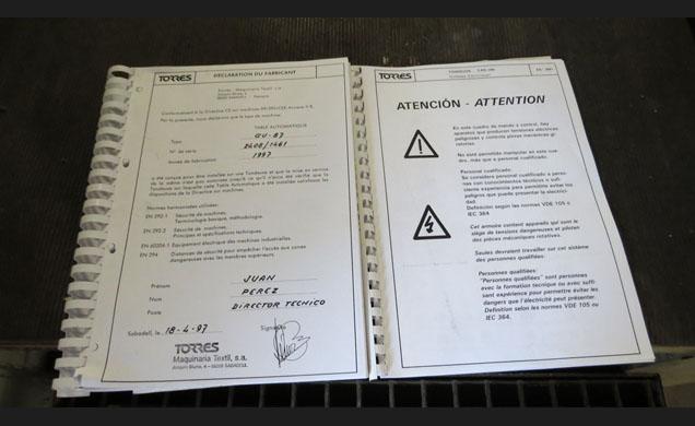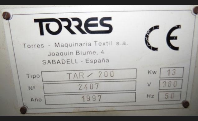 Descripción: 1 Tundosa marca TORRES. Tipo TAR2000. Año 1997. Nº 2407. Completa con Plegador y Enrollados. Ancho 1800 mm. Doble tiger con variador de frecuencia cada uno, Mesa automatica de corte, Detector de costuras