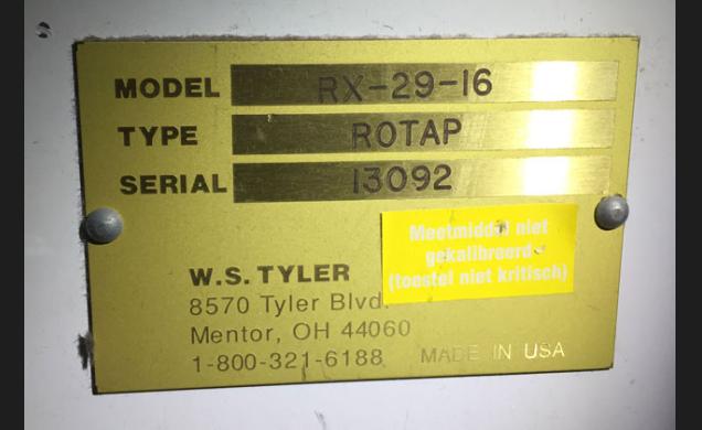 Descripción: Tamizador de laboratorio marca W. S. TYLER, tipo ROTAP, modelo RX-29-16