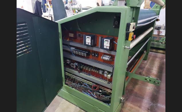 Cabezal de enrollado con grupo centrador. Control de la tensión del enrollador y cuenta metros electrónico.