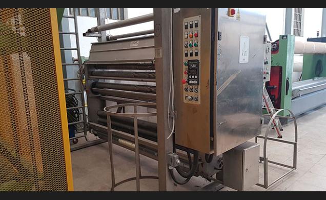 Descripción: Destorcedor de Cuerda marca CORINO. Modelo APRICORDA. Nº 99/100/00 Año 2000. Ancho rodillos 2.200 mm. Doble Grupo abridor motorizado, centrador. Salida para Carro bota.
