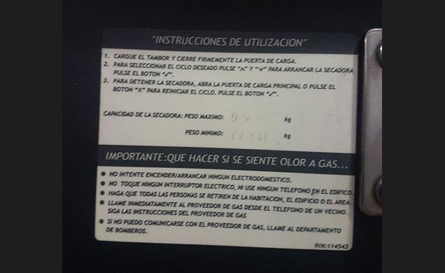 Descripción: Secadora "tumbler" industrial con funcionamiento a gas.