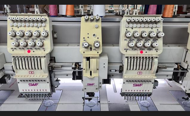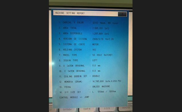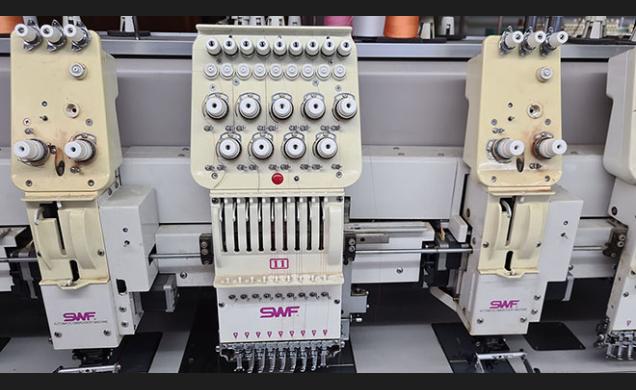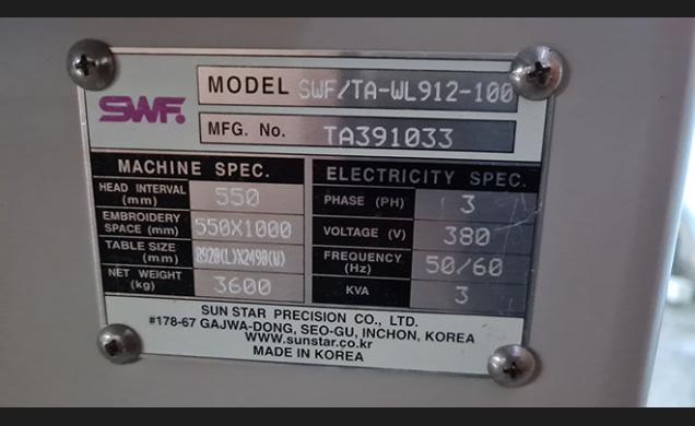 Descripción: Bordadora marca SWF modelo SWF/TA-WL912-100. Año 2005. De 12 cabezales de 9 colores + 1 color,