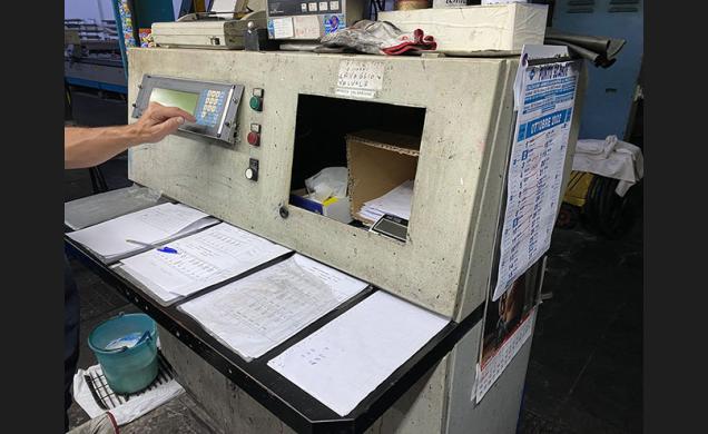 Description: TERMOELETTRONICA Printing colour pastes preparation kitchen. Year 1992. 18 Colours Automatic preparation. Actually prepared for Pigments.